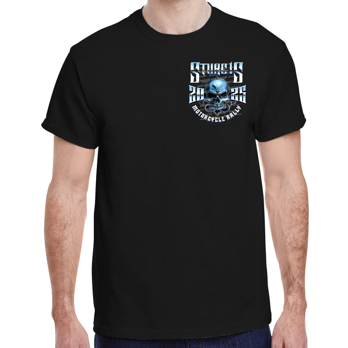 2025 Sturgis Motorcycle Rally Blue Winged Skull Black T-Shirt LDLO14052511