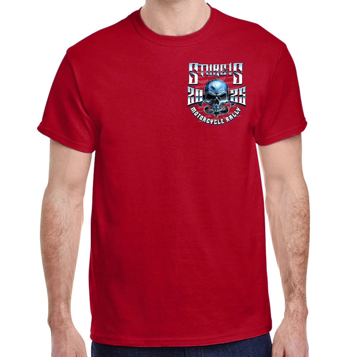 2025 Sturgis Motorcycle Rally Blue Winged Skull Red T-Shirt LDLO14052513