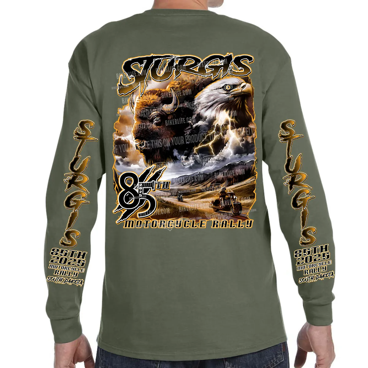 2025 Sturgis Motorcycle Rally Buffalo Eagle Military Green Long Sleeve LDLO14052522 $49.95 $39.95