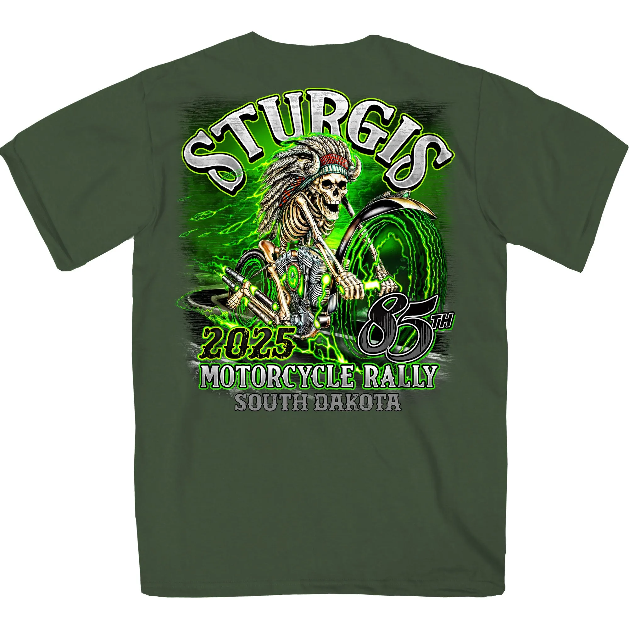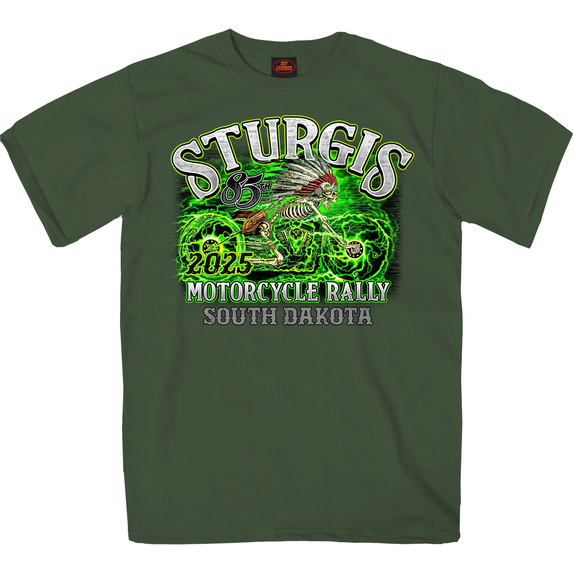 2025 Sturgis Motorcycle Rally Skeleton Chief Military Green Men's T-Shirt LDLO15052519 $39.95 $29.95