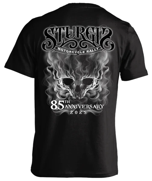 2025 Sturgis Motorcycle Rally Smokey Skull T-shirt – 85th Anniversary DTL19052503