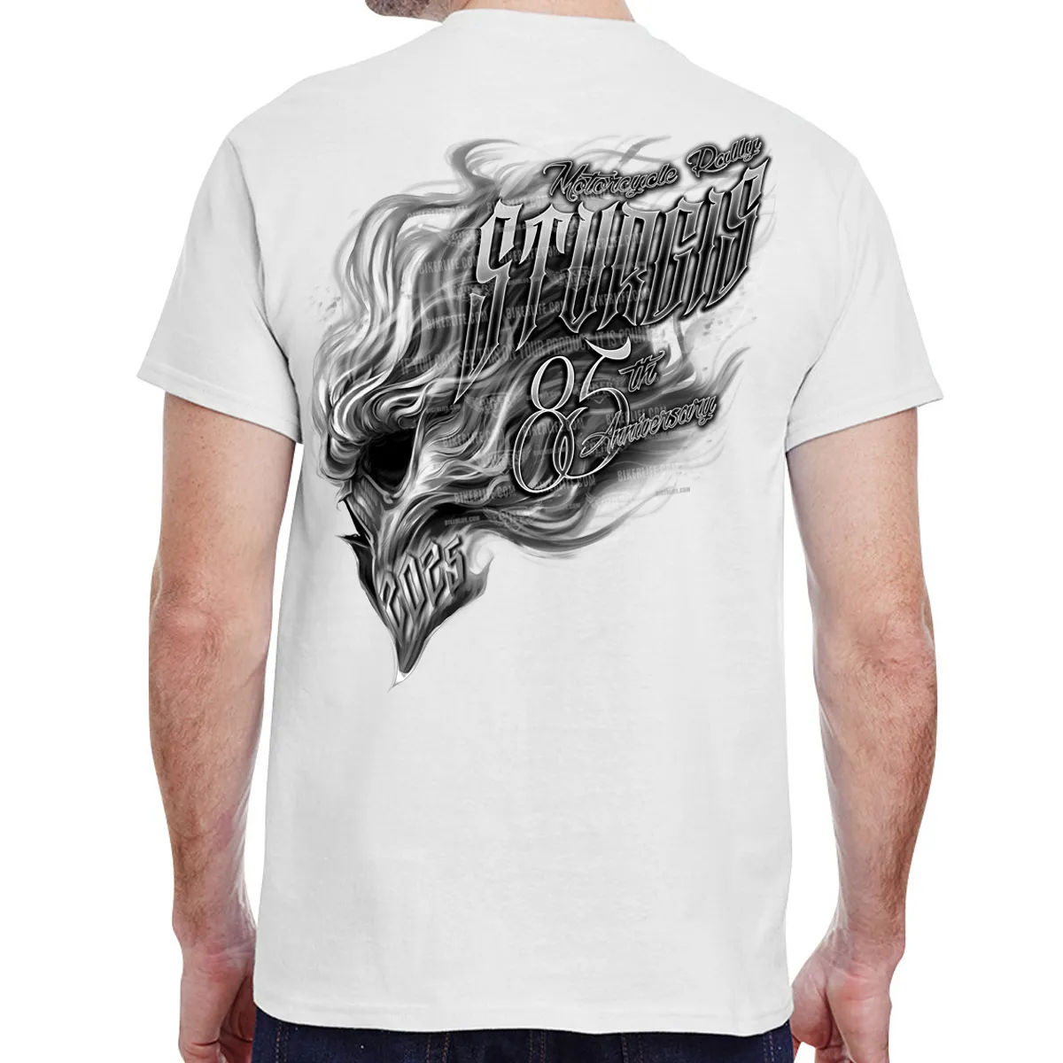 2025 Sturgis Motorcycle Rally Smokin’ Skull White T-Shirt LDLO14052537