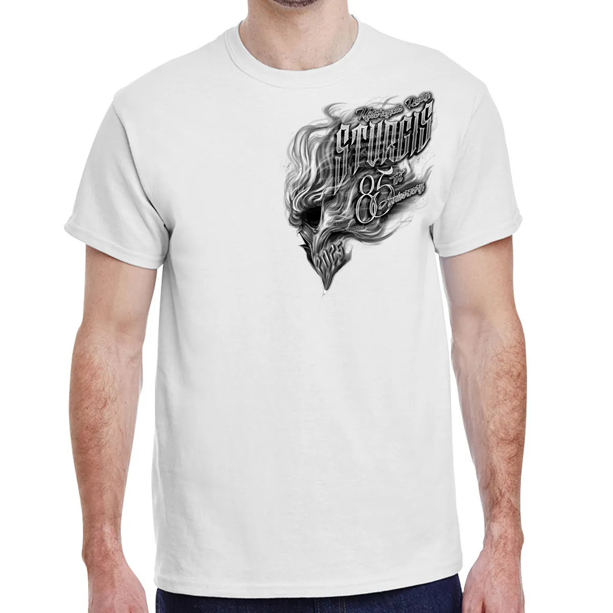 2025 Sturgis Motorcycle Rally Smokin' Skull White T-Shirt LDLO14052537 $39.95 $29.95
