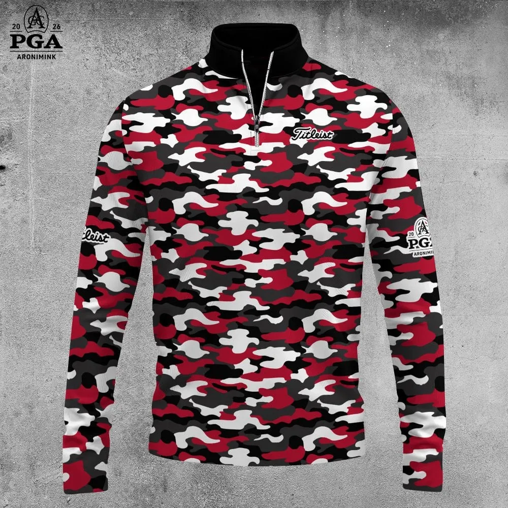 Golf 2026 Black White Red Camo Pattern AOP Quarter-zip Pullover LDLO30012661 $79.95 $64.95