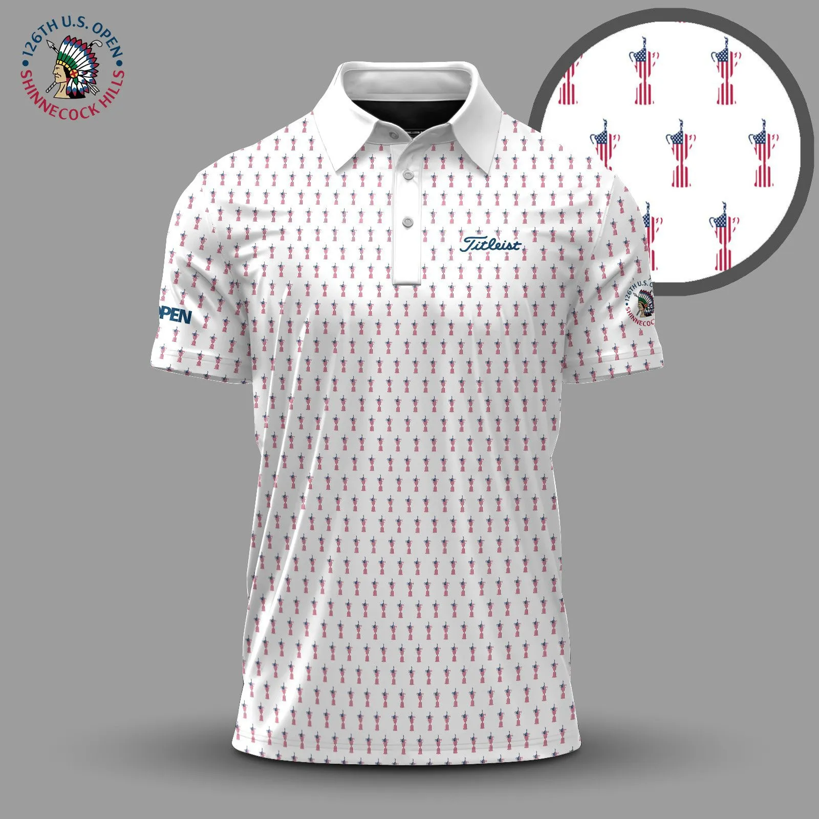Golf 2026 Open. White US Pattern AOP Polo Shirt LDLO19112553