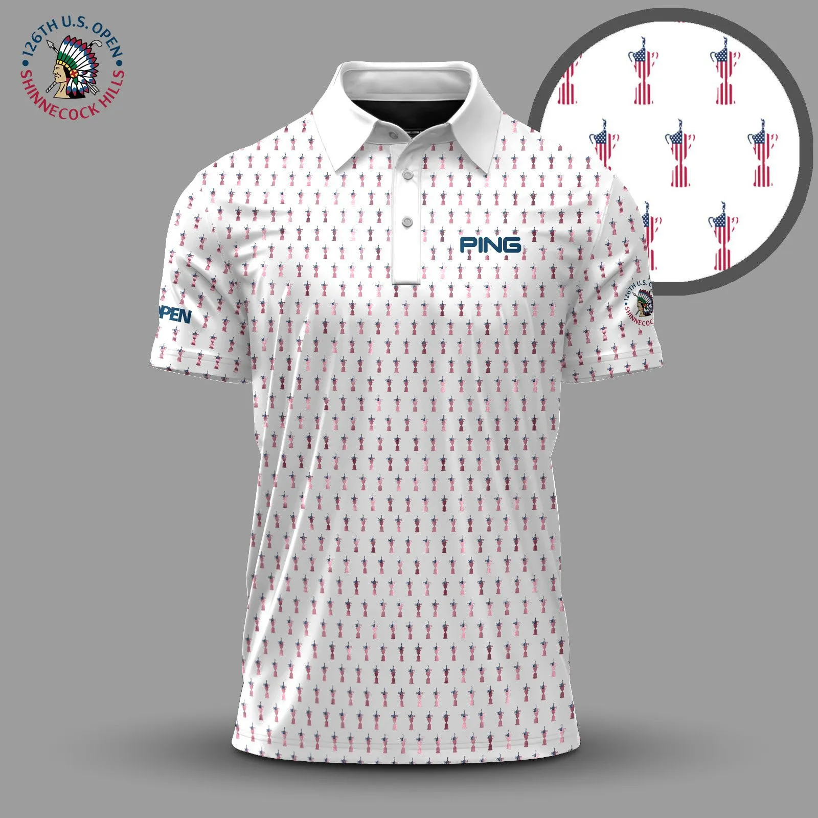 Golf 2026 Open. White US Pattern AOP Polo Shirt LDLO19112556