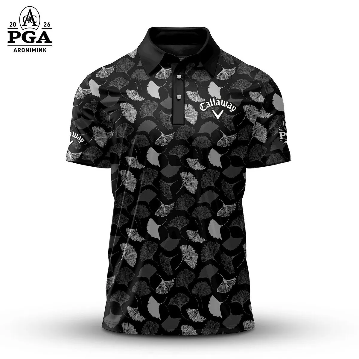 Golf 2026 PGA. B & W Leaf Pattern AOP Polo Shirt DTL11102531