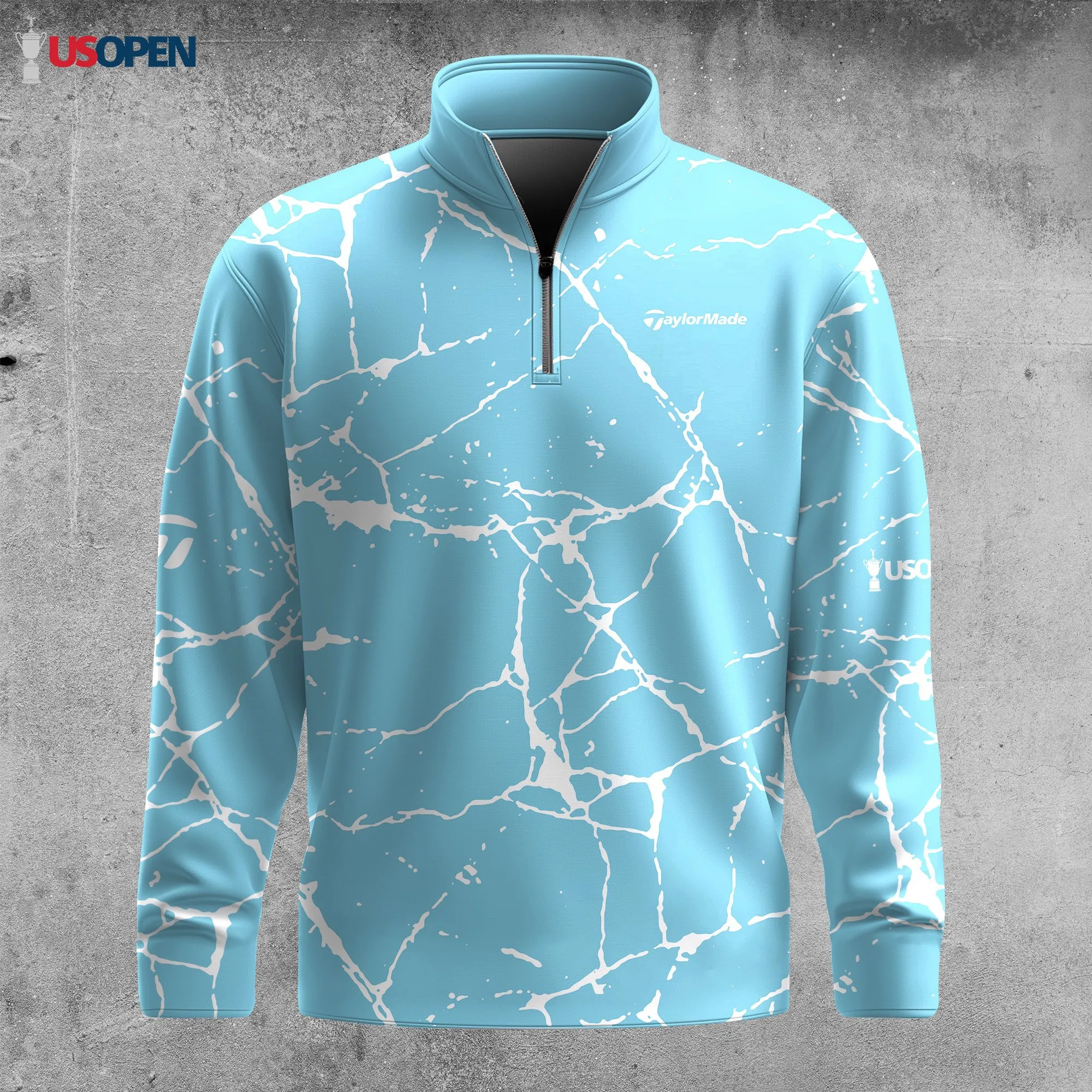 Golf 2026 White Paint Flakes Light Blue Pattern AOP Quarter-zip Pullover LDLO19112542 $79.95 $64.95