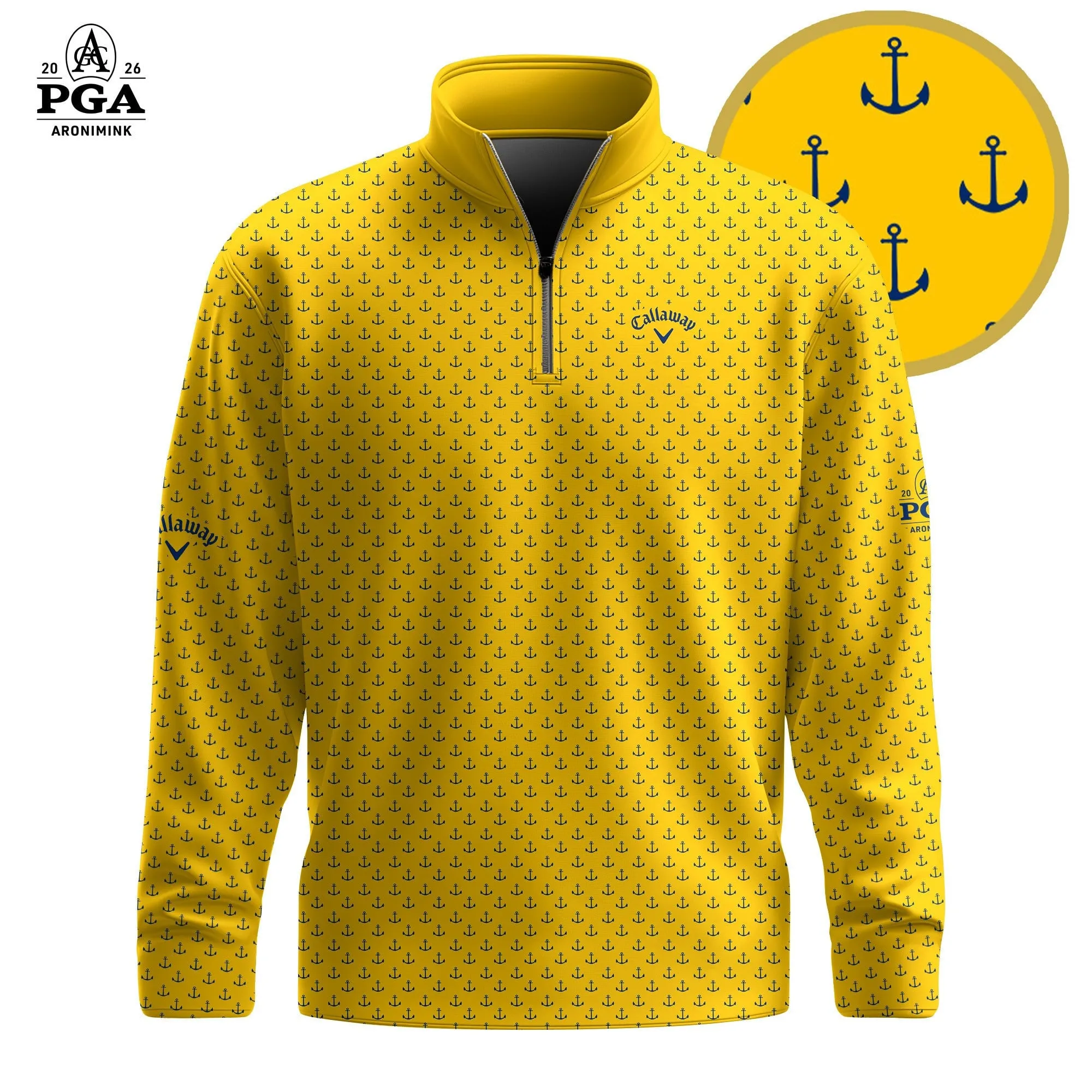 Golf 2026 Yellow Blue Anchor Pattern AOP Quarter-zip Pullover LDLO30012666